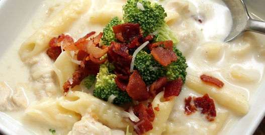 Add the macaroni to a very large mixing bowl. Stir in the cheese sauce and the cooked ground beef until combined.